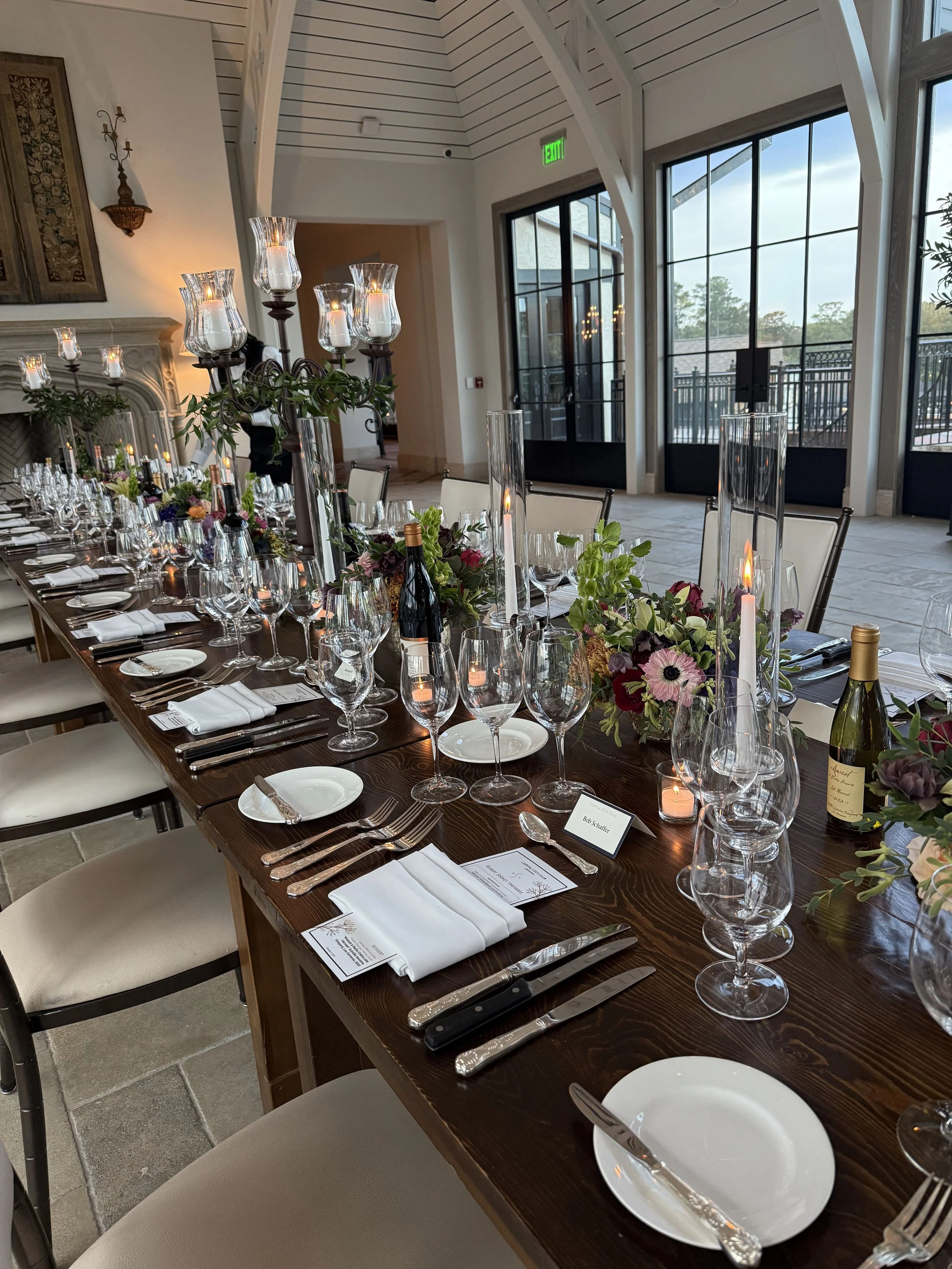 Event planning and creative design: We design experiences that feel elevated yet effortless, overseeing pricing, design, content, location, run of show, and storytelling. These details shape the evening as much as the wine itself. Creative design reaches beyond menus to the table: glassware, florals, dining style, service flow, and the visual rhythm of the meal. Wine lives in context, and that context is deliberately crafted. A seamless dinner is never accidental; it’s the result of careful planning and operational precision.